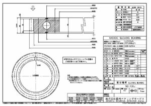 【主な仕様】外径:552 内径:310 高さ:94モジュール:6 歯数:90 PCD:540静定格スラスト荷重:1,396kN(142,000kgf) 質量:81kg